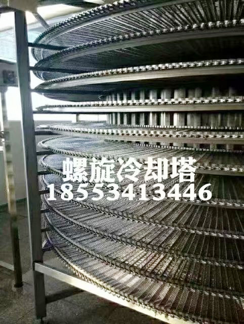螺旋冷卻塔是一種常用的連續性輸送機械,它是利用工作構件即螺旋體的旋轉運動使物料向前運送,是現代化生產和運輸不可缺少的重要機械設備之一!螺旋冷卻塔的優點:占地面積小,結構簡單、合理。 動力消耗小,料槽磨損小 維修方便 冷卻效率高 ,傳送暢順、雜音少、低能耗、保養簡單、快速、安全。螺旋冷卻塔應用范圍:適用于冷卻漢堡,法式小面包,毛毛蟲,面包等產量較大,冷卻時間較長的品種,采用不銹鋼螺旋式冷卻輸送帶,PLC智能控制。在功能不變,結構的變化帶來成本的變化,最終帶來了利潤的變化,使中小型食品廠買的起,用的起。螺旋冷卻塔選用不銹鋼螺旋網帶載體,網帶寬度300-900mm,層間距及層數依產量定制,冷卻時間20-120分鐘.冷卻產量大,可直接冷卻漢堡,吐司,甜面包,也可帶盤冷卻月餅,奶香包等.定制靈活,依據場地和產能設計直徑和網帶.單塔為上進下出或下進上出.雙塔為下進下出.我廠可根據用戶的產量身訂做,打造經濟實惠的非標螺旋冷卻塔,可大大提高生產效率。